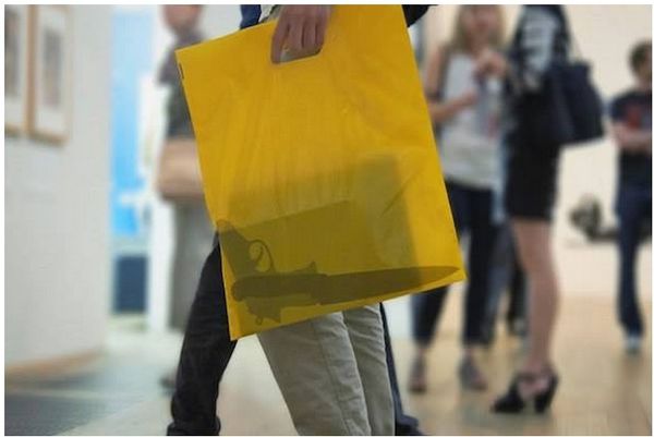 他們?cè)谌S色的購物膠袋上,印上危險(xiǎn)物品的剪影,乍看一下,還以為袋子裡真的藏有了危險(xiǎn)物,這種購物膠袋拿在手裡不但路人回頭率高,還可能會(huì)莫明奇妙的惹來警察的監(jiān)視。