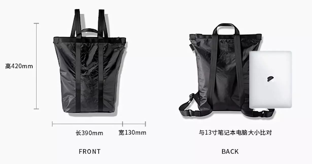 背包的尺寸是42cm×39cm×13cm,小編日常通勤,放了筆記本以后,還有很大空間。