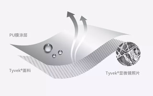 外面的PU膜涂層是一種極薄的高科技材料,超輕、防水,卻能很好地透氣排濕。